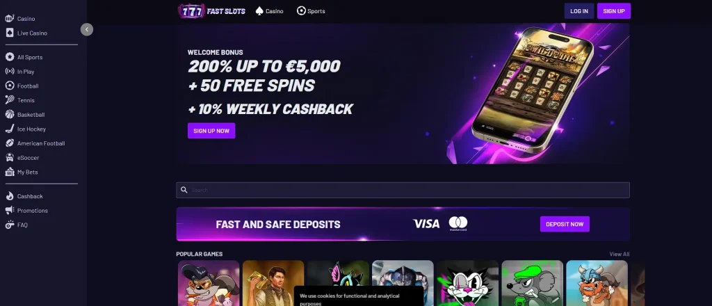 4. Fast Slots – Speedy Sportsbook Access With Instant Withdrawals (7.0/10)